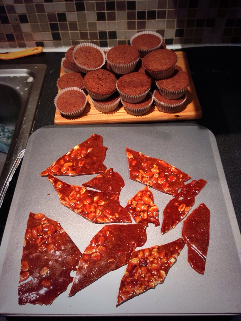 Leave somewhere out of reach so you aren’t tempted to touch it for a while (this will be hella hot!) Once completely cool, bash with your fist into shards, as small as you like, and sprinkle on top of your iced cupcakes. OR OR OR mix some smaller, dustier shards into the buttercream before you ice the cakes ! :O