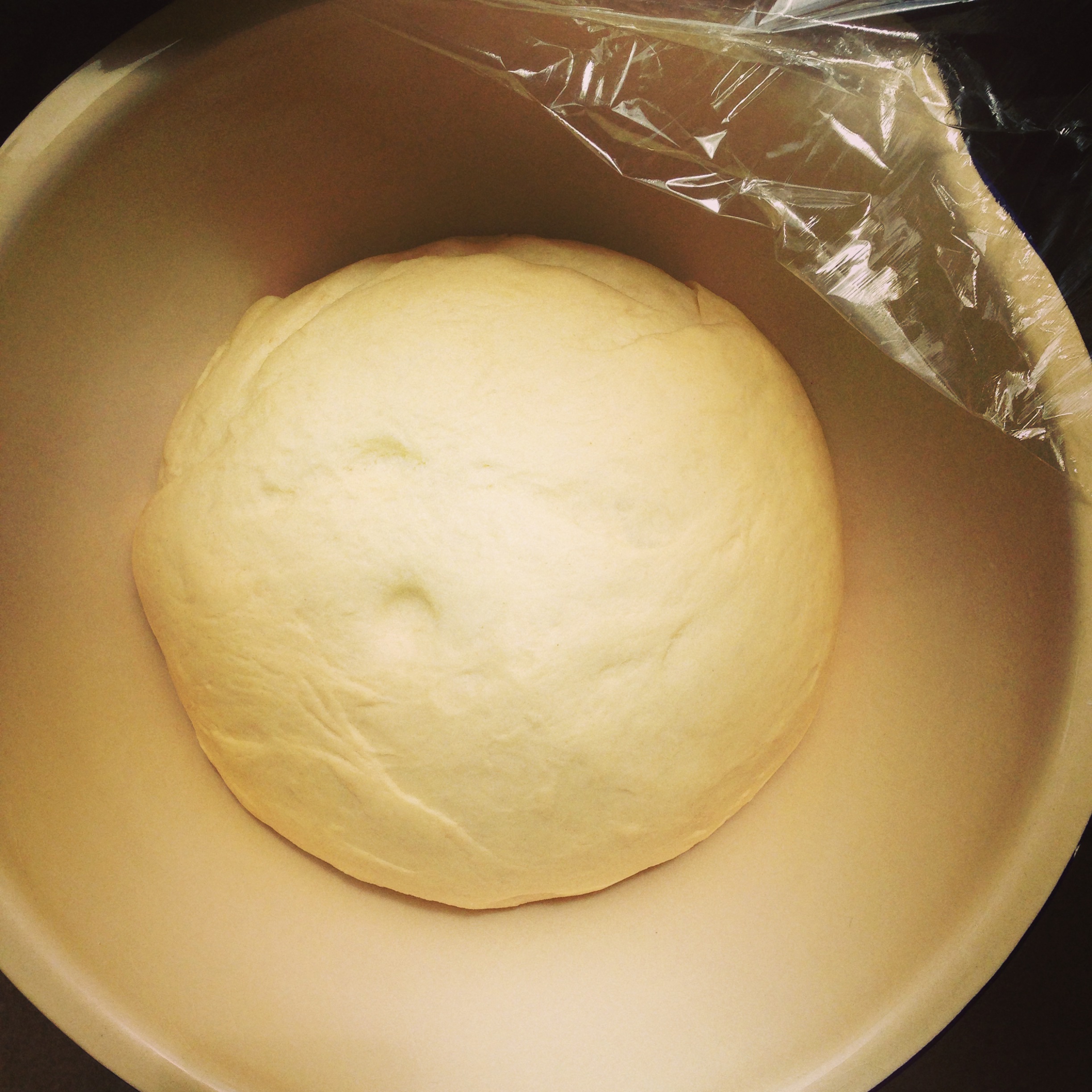 Gradually pour in the wet mix into the dry mix a little at a time and mix to form a soft ball of dough. Knead for 10 mins. Cover the bowl with clingfilm and leave to prove until it has doubled in size, for around 1-2 hours (I take a picture of the dough pre-rise, so I can gauge when it has doubled!)