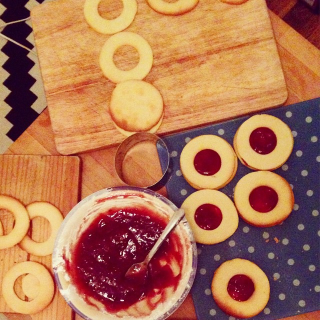 The shortbread recipe I use is from Adam Stokes on Great British Chefs. It’s tried and tested and i’ve made them so many times – it makes light buttery biscuits that are lush and soft in the middle with a short snap. I’ve taken the vanilla and cinnamon from the recipe and instead use jam to make dodgers.