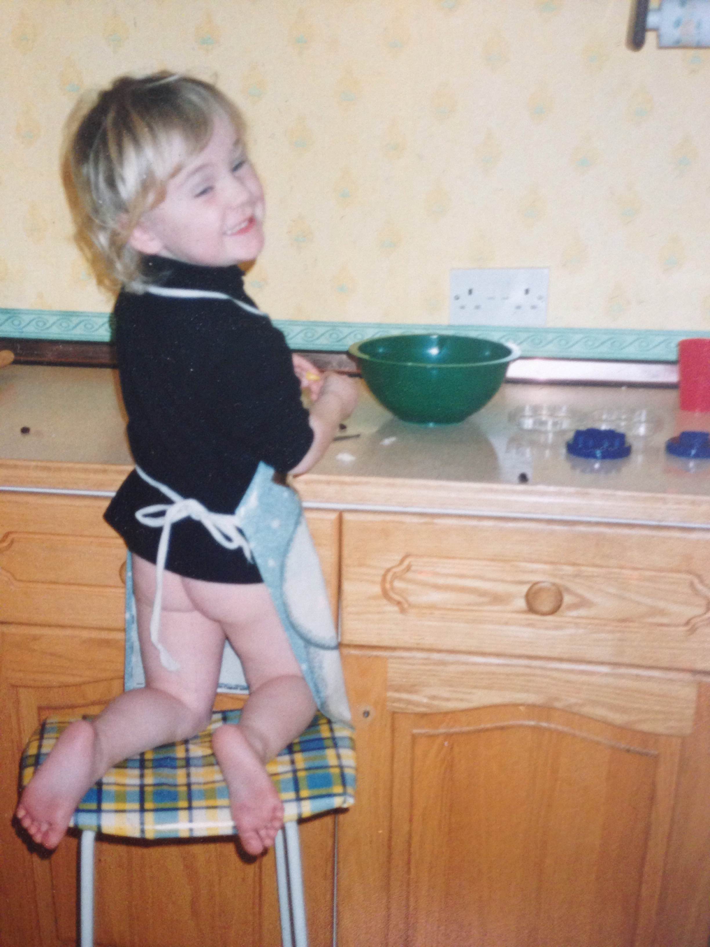 Me making salt dough in the 90’s with no trousers. I still use the same bowl and cutters, but now I wear trousers..