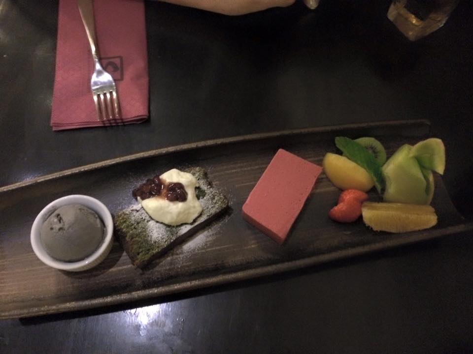 This was ordered on a whim (I think I had doused my sushi in far too much soy sauce and was after a hit of sugar after my meal.) The cake has a mossy green coating on it’s brown surface, the ice cream is stone grey from the combo of black sesame and cream and the mousse is blood red, making the whole thing look like a graveyard scene on an American Halloween cake. But the bright grassy taste of matcha with creamy white chocolate chocolate was an absolute dream come true, with gorgeous contrasts in flavour from the nutty ice cream and sharp fruity.