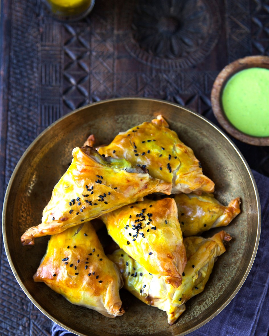 Pulled lamb shoulder samosas & green chilli chutney
